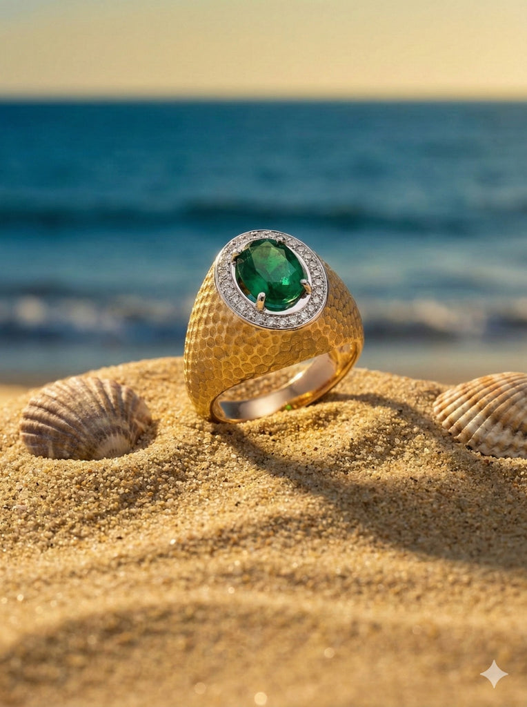 18K White & Yellow Gold Diamond with Emerald Ring