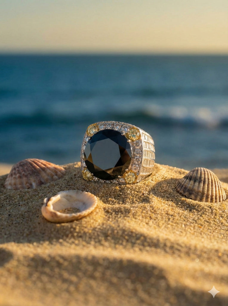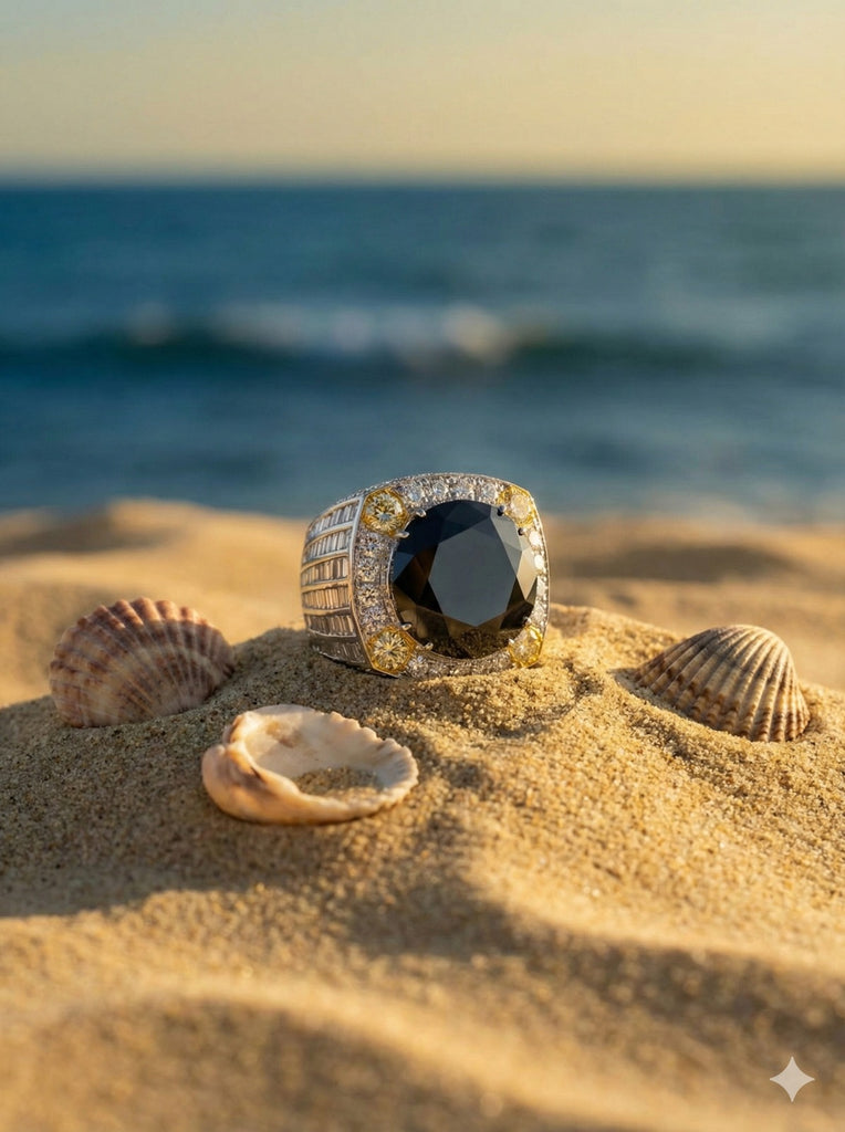 18k Two-Tone Gold Unisex Ring with Black Diamond Halo