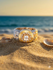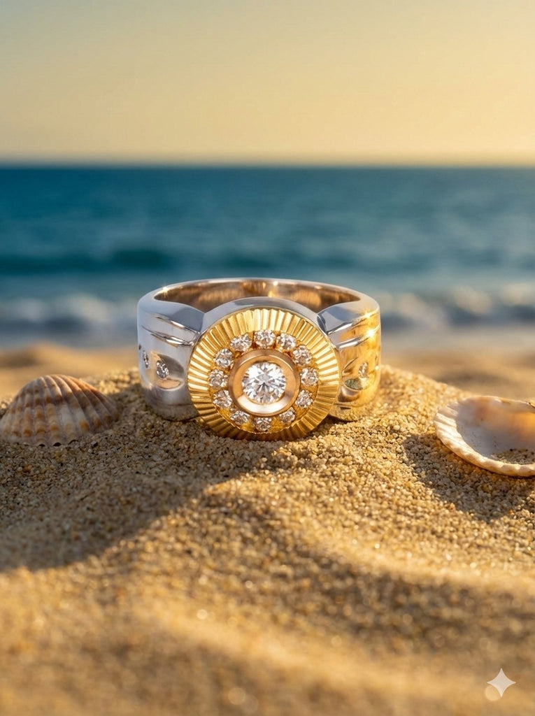 18k Two-Tone Gold Gents Ring with Center Diamond